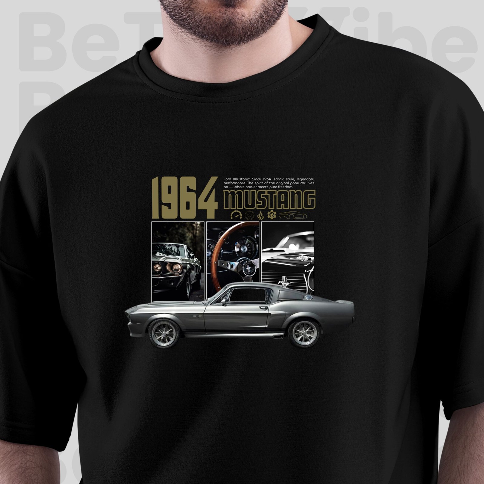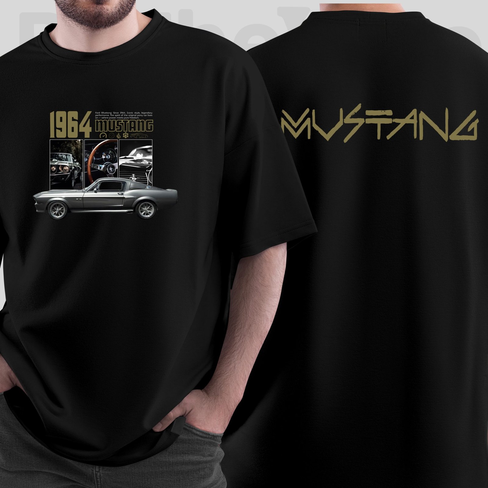 Rev up your street style with the 1964 Mustang Vintage oversized tee. Crafted from ultra-soft, premium cotton in bold black, this statement shirt features detailed retro car art and dashboard graphics on the front, capturing the spirit of the classic Mustang. The back showcases a striking “MUSTANG” wordmark in a vintage-modern font, making it a must-have for car enthusiasts, collectors, and lovers of timeless Americana.